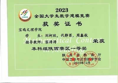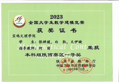 我院2021级计算机科学与技术3班张婵媛、刘孜颖,2021级人工智能1班刘柯欣、周鑫航,2021级计算机科学与技术2班代静酉五位同学在2023年全国大学生数学建模竞赛中荣获本科组陕西赛区一等奖。