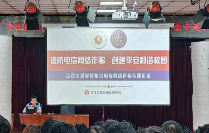 为进一步提高我院大学生安全意识,营造平安和谐的校园环境,5月22日,星空体育官网登录平台邀请渭滨公安分局反诈中心一级警长索峰于石鼓校区2号报告厅举办“安全教育筑防线,和谐校园伴成长”校园安全专题讲座,学院全体辅导员、班主任、学生代表400余人参加本次讲座。