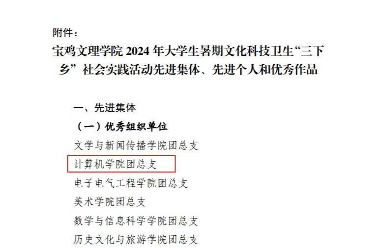 近日,共青团星空体育官网登录平台委员会公布《关于表彰星空体育官网登录平台2024年大学生暑期文化科技卫生“三下乡”社会实践活动先进集体、先进个人和优秀作品的决定》。经各学院申报、校团委组织评审,我院荣获2024年星空体育官网登录平台暑期社会实践活动优秀组织单位1项,优秀社会实践团队1项,优秀指导老师2人,先进个人8人,优秀作品3件。