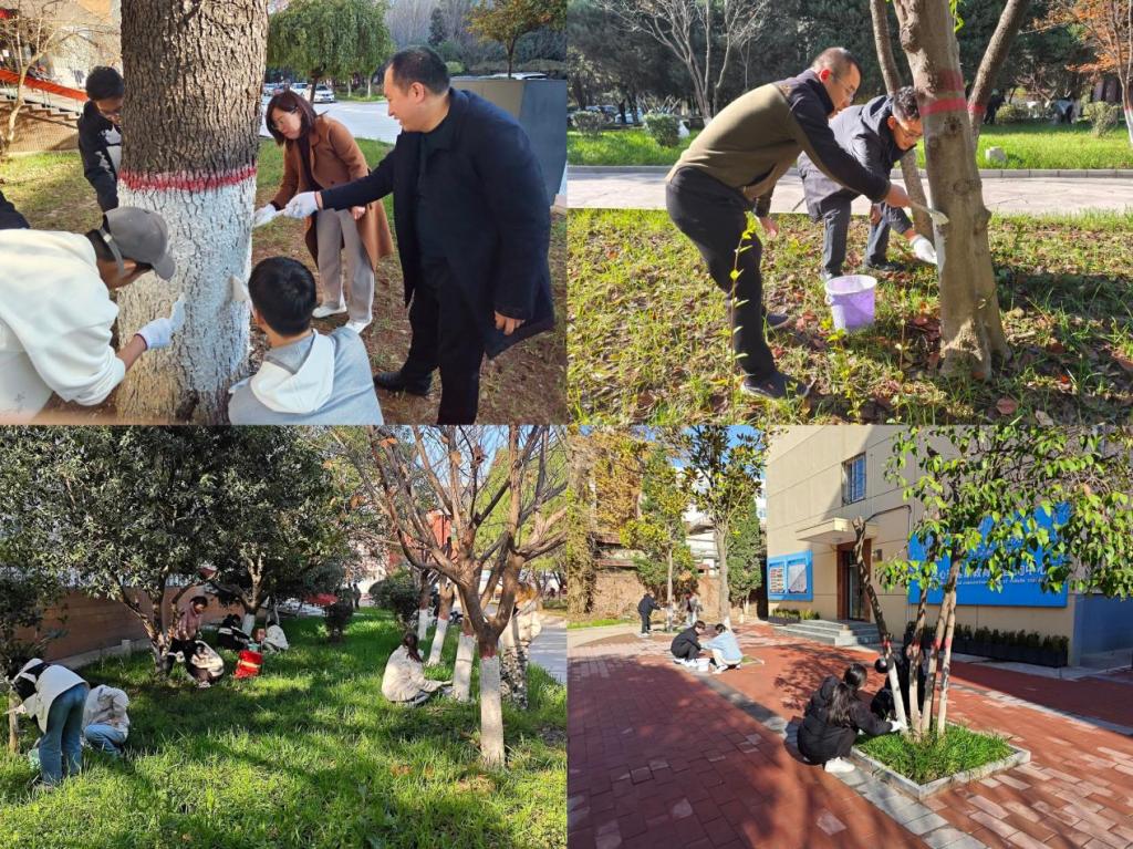 “树木刷白,情暖寒冬”——学院组织开展校园树木刷白活动