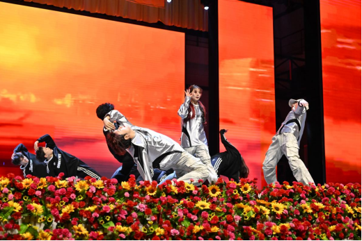 互动环节中,同学们、老师们和小朋友们一同参加“抢凳子”游戏,将现场气氛推向高潮。晚会在舞蹈《相亲相爱》的欢乐旋律中落下帷幕。整场晚会高潮迭起、精彩纷呈,现场掌声、欢呼声经久不息。