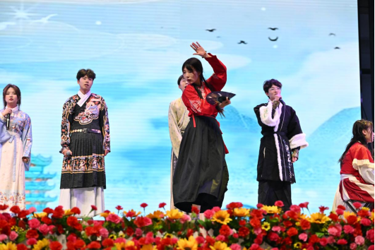 开场舞《Fighting》以灵动舞姿、富有感染力的节奏与炫酷舞步瞬间点燃了现场气氛,拉开了晚会序幕;歌曲《我们俩》《找自己》《我们》表达了学生们对青春岁月的美好憧憬与真挚情感;朗诵合唱《觉醒年代》唱响了新时代青年的爱国情怀和民族自豪感;舞蹈《大河之子》以黄河为背景,通过舞者们的深情演绎,展现了中华母亲河的壮丽与豪迈,弘扬了伟大的民族精神;相声《我要恋爱》《时尚老头》以诙谐幽默的语言表达了大学生对生活的乐观态度;乐队《海阔天空》以激昂的旋律唤起了大家对自由与梦想的执着追求;歌曲《等待》以悠扬婉转的曲调和专业演唱水平倾诉着无尽的期盼;小品《白雪公主》凭借夸张搞笑的表演和巧妙的境界设置,演绎出不一样的童话世界;创意舞台剧《诗画中国》恰似徐徐展开的画卷,描绘出如诗意境,把对中华传统文化的热爱之情展现得酣畅淋漓;舞蹈《Fire》《第一天》展现了当代大学生的青春活力与自信风采,唱出了同学们对梦想的执着追求。