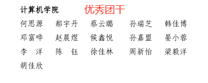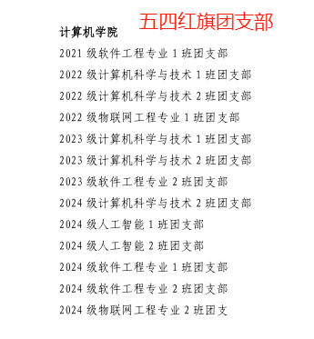 按照《关于做好2024年度“五四”评优工作的通知》(宝文理院团字〔2025〕7号)精神,通过团员教育评议、组织推荐、资格审查、述职答辩、综合评定等环节,学院参与2024年度共青团工作先进集体和先进个人评选活动。经校团委研究决定,学院喜获“2024年度共青团单项工作先进集体”荣誉称号2021级软件工程1班团支部等13个团支部荣获“2024年度五四红旗团支部”荣誉称号,2023级计算机科学与技术1班吴鑫源荣获“2024年度十大活力团支部书记”荣誉称号22级人工智能2班李月阳荣获“2024年度十佳共青团员”荣誉称号,22计算机科学与技术2班周向远荣获“2024年度十佳共青团干部”荣誉称号22计算机科学与技术2班何思源等16名同学荣获“2024年度优秀共青团干部”荣誉称号23人工智能1班郭帅等24名同学荣获“2024年度优秀共青团员”荣誉称号。