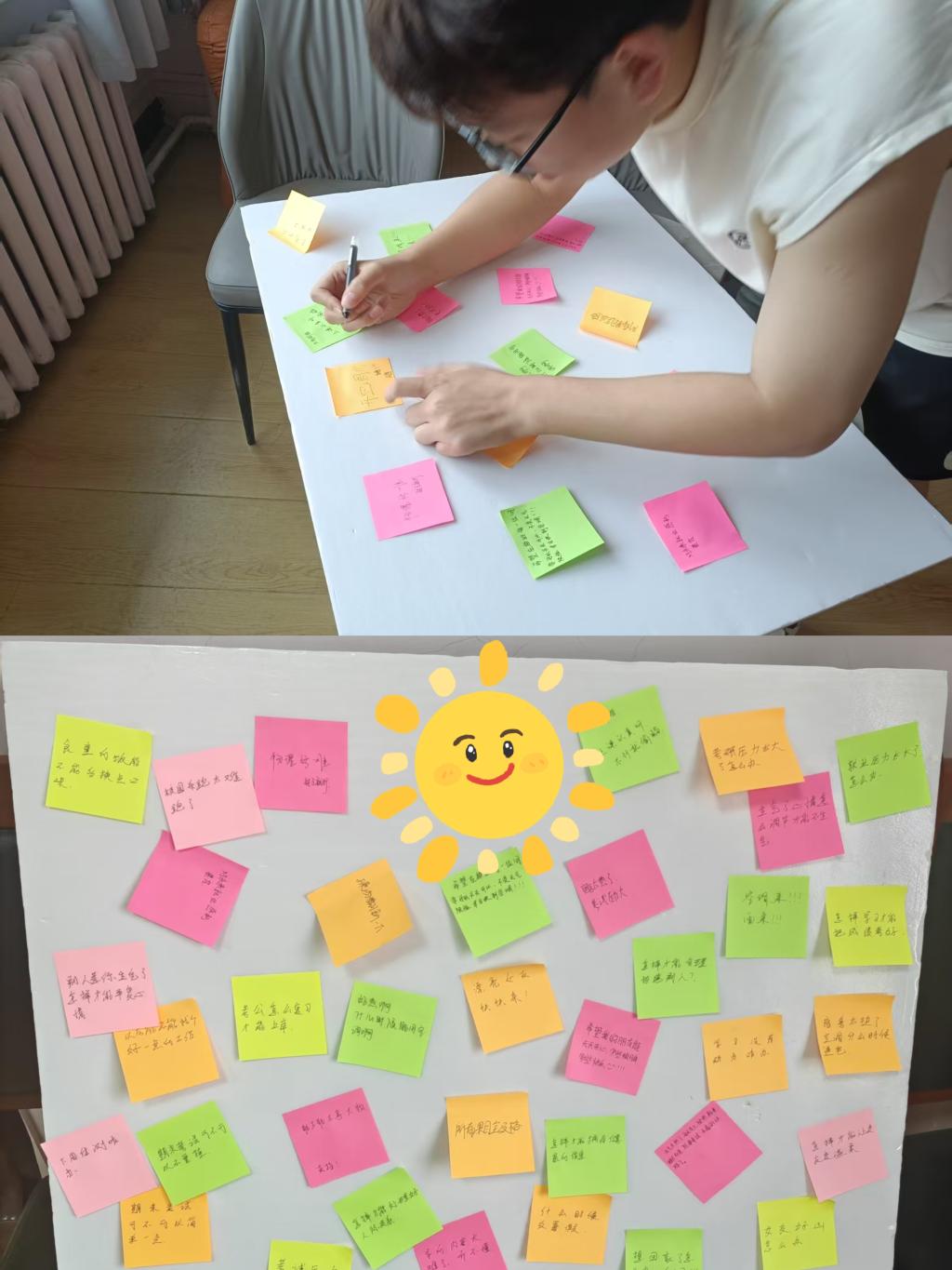 本次活动为同学们提供了一个类似“树洞”的展板,同学们在便利贴上写下自己想说的话,将自己的便利贴贴在展板上。活动现场气氛热烈,同学们纷纷拿起便利贴,认真写下对未来的期许和对梦想的追求,有的同学希望在学业上取得优异成绩,有的则憧憬着未来的职业发展。随后,大家依次走到展板前,将写满心愿的便利贴贴在展板上。五颜六色的便利贴很快贴满展板,形成一道独特的风景线,大家不仅写下自己的烦恼,还热忱主动回复他人的疑惑。温暖与支持在彼此间不断传递,拉近了同学们心灵的距离。