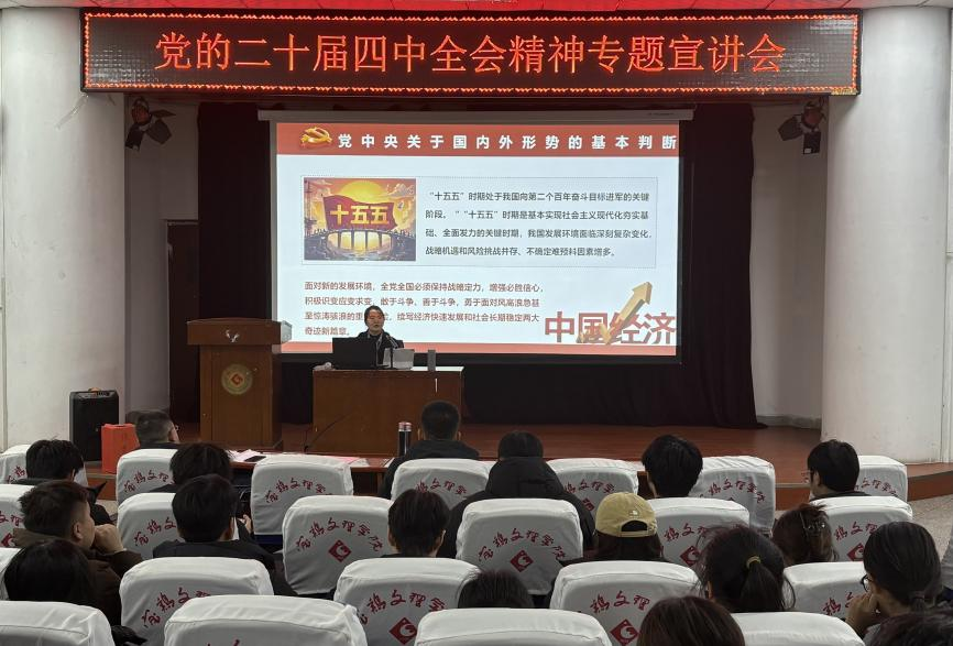 12月24日下午,星空体育官网登录平台在石鼓校区一号报告厅开展“一站式”学生社区党的二十届四中全会精神专题宣讲会。马克思主义学院苗怡怡博士应邀作专题宣讲报告。宣讲会由学院党委副书记张磊主持。