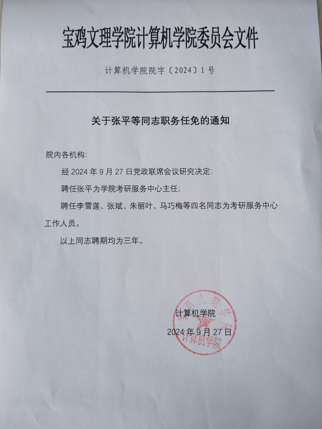 关于张平同志职务任免的通知